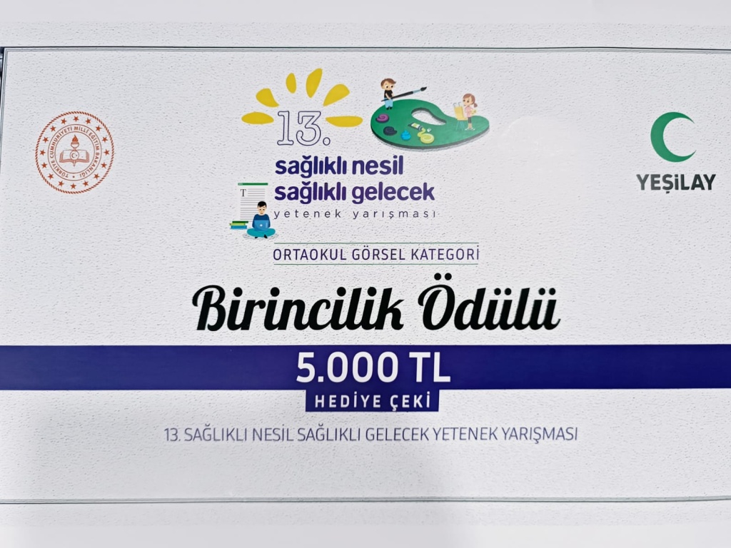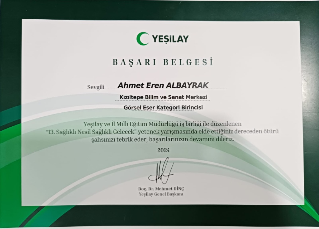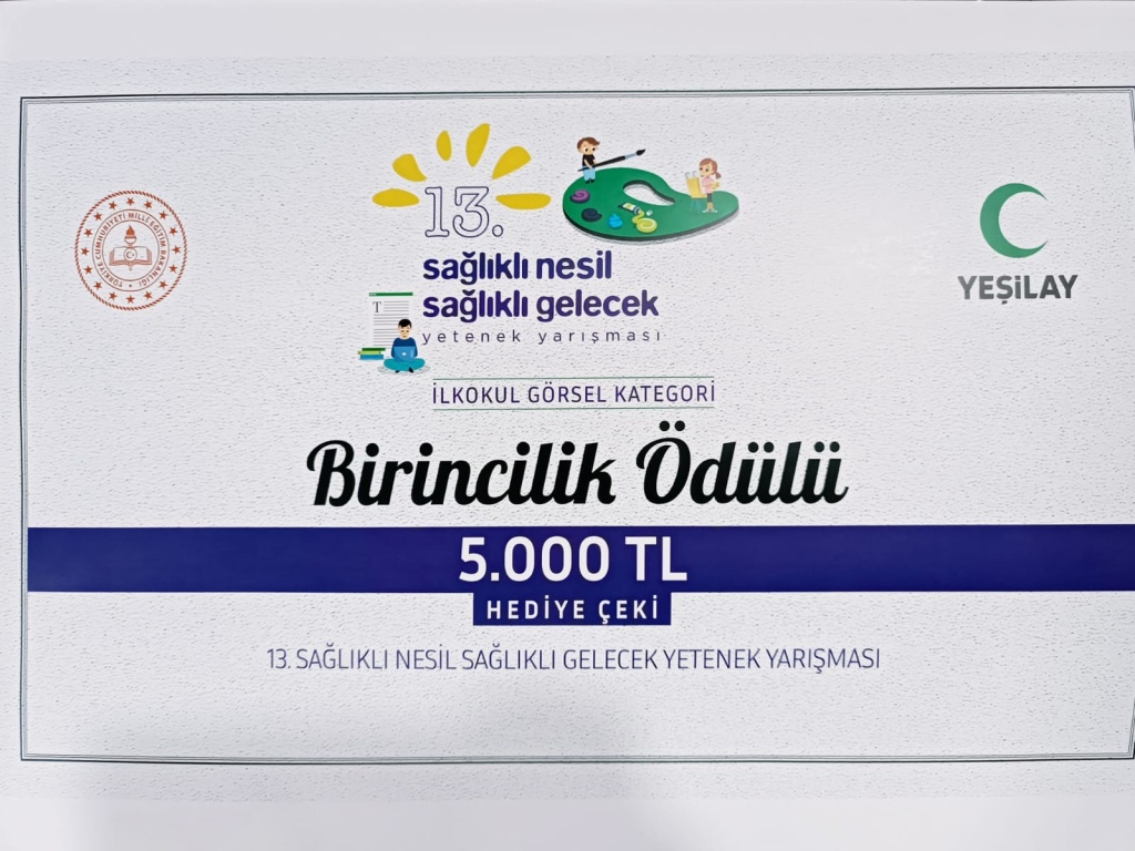 Yeşilayın Düzenlediği Türkiye Geneli "Sağlıklı Nesil Sağlıklı Gelecek" Resim Yarışmasında öğrencilerimizden Miraç Esilla KOLCU İlkokul kategorisinde ve Ahmet Eren ALBAYRAK Ortaokul kategorisinde il birincileri olmuşlardır.